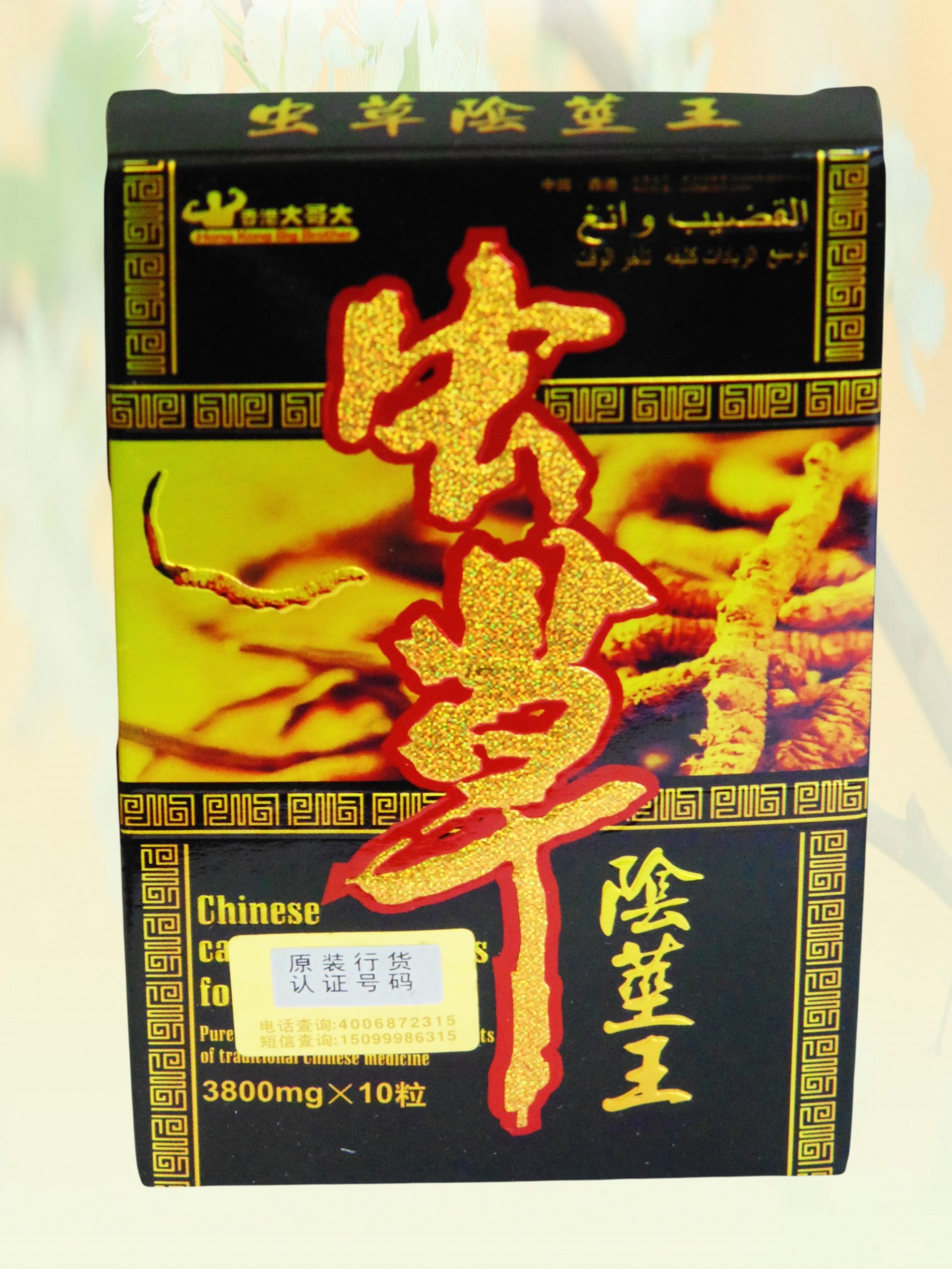 Состав: Cordyceps sinensis (гриб-гусеница, кордицепс), rhodiola yunnanensis, хунцзинтянь, личжи, лицум и т.д.