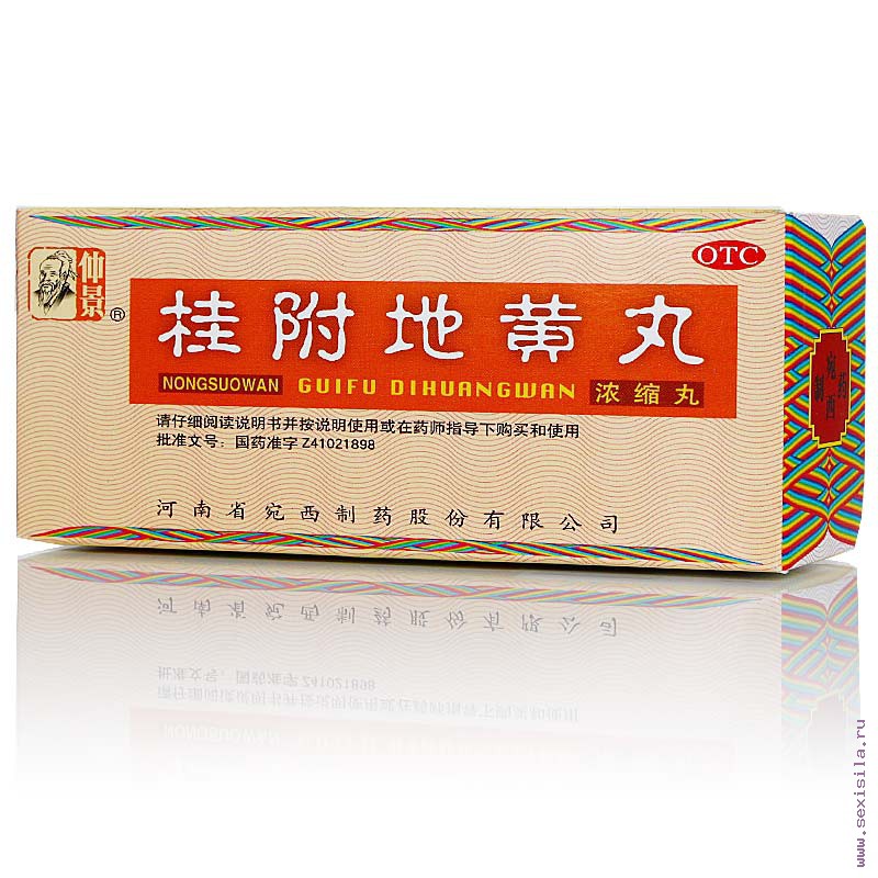 Cостав: обработанный корень ремании, плод кизила, корневище диоскореи, корневище частухи, пория кокосовидная, кора корня белого пиона, ветвь коричника, обработанный боковой корень аконита.