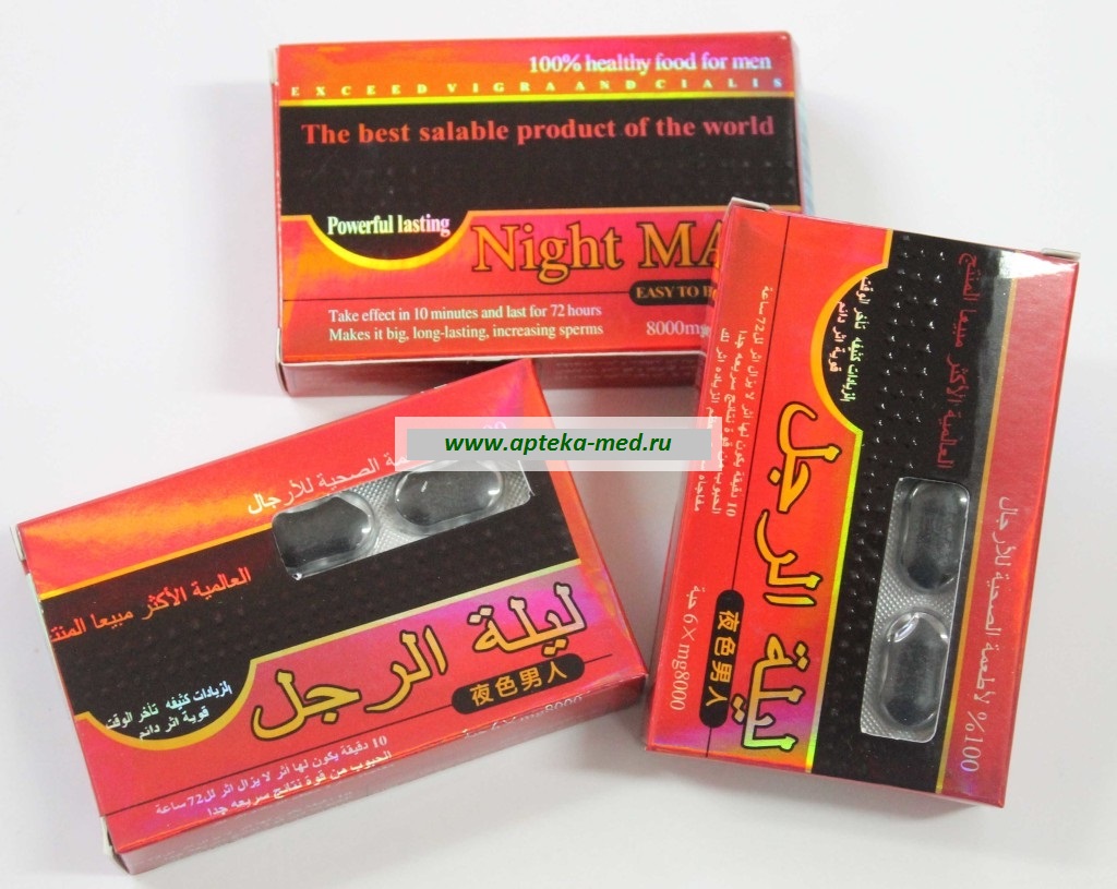 Возьмите 1 таблетку препарата  «Night Man»  и примите за 10 минут до полового акта, через 10-15 минут Вы почувствуете себя молодым и энергичным мужчиной всю ночь, эффект препарат может действовать  до 72 часов.