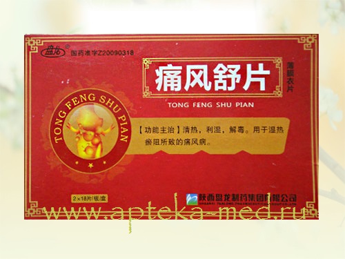 «Тонг Фэн Шу Пьян» — лекарственный препарат, применяемый для лечения гиперурицемии (повышенное 2521-1209191PKC95.jpgсодержание мочевой кислоты в крови) и ее осложнений (подагрический артрит). Основной компонент препарата — аллопуринол относится к ингибиторам фермента ксантиноксидазы, являющегося катализатором окисления ксантина в мочевую кислоту.